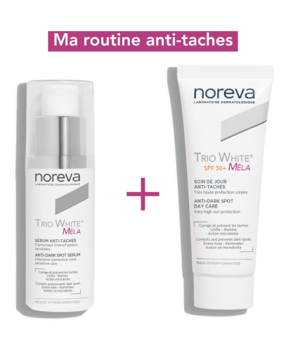 Fruit de la recherche scientifique Noreva, Trio White® Méla est une gamme complète de soins anti-taches pour le visage et le corps, qui révolutionne le domaine de l’hyperpigmentation grâce à une formule multi-correctrice dernière génération fondée sur 3 innovations majeures.