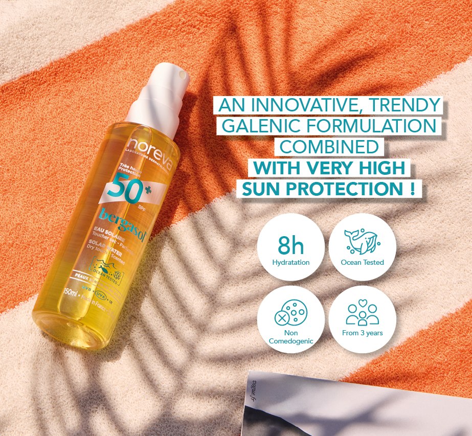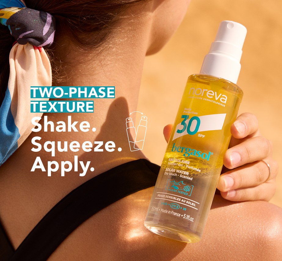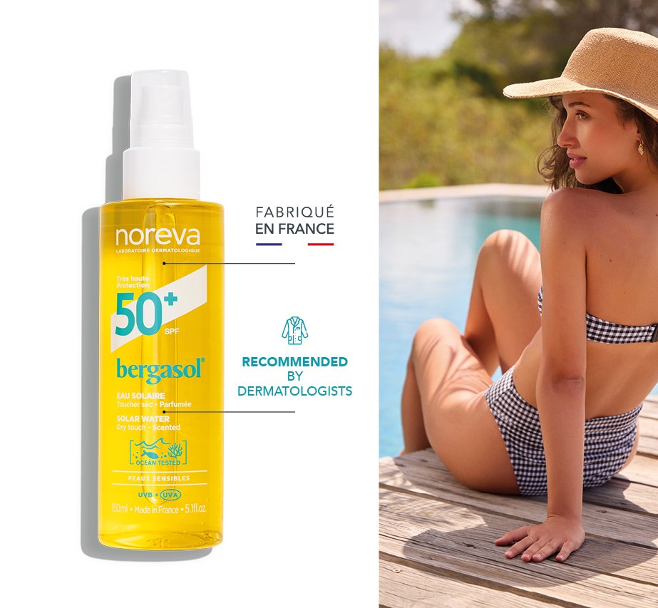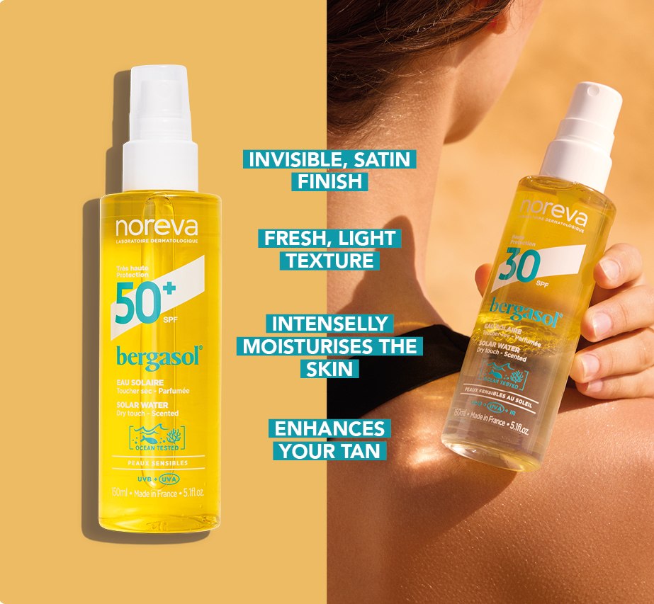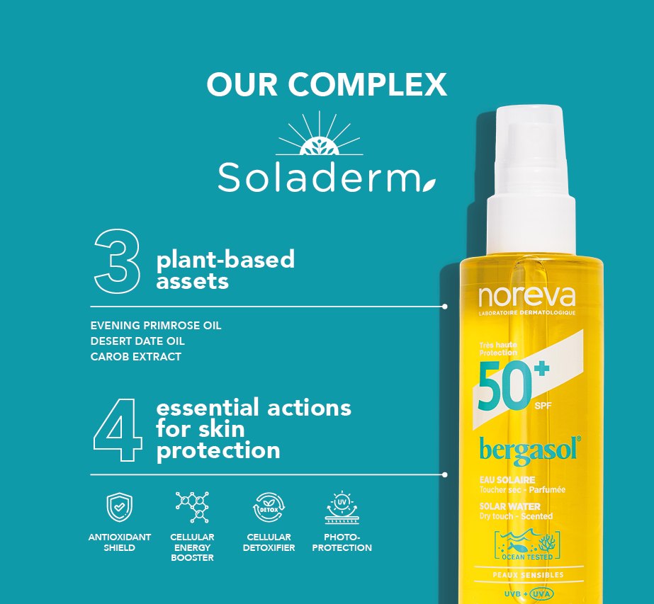 Dotée d’un système de 4 filtres à ultra-large spectre, Bergasol® Eau solaire SPF30 nouvelle génération offre une protection globale contre les UVA, UVB et lumière bleue.