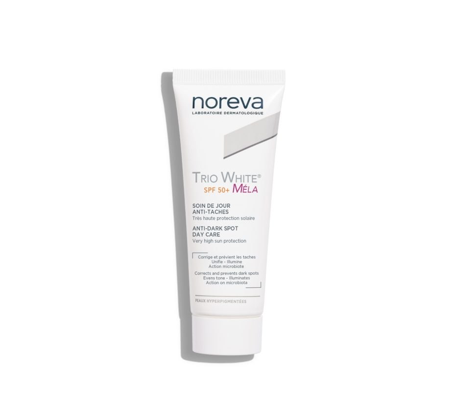 Trio White MELA Soin de jour SPF50+ est un soin dépigmentant qui offre aussi une très haute protection solaire contre les effets néfastes du soleil sur l’apparition des taches grâce à ses 4 filtres UV performants (UVA et UVB). Concentré d’innovation scientifique, il agit contre tous les types de taches et est adapté à tous, peaux sensibles et femmes enceintes.